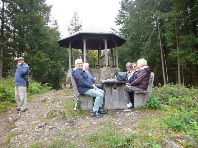durch den Exotenwald wanderten wir zur Schützhütte nähe der Zinkgräfbam#nkvom Blütenweg aus ikonnten wir den herrlichen Blick auf Lützelsachsen und in die Rheinebene genießen kurze Rast am Häuslebergauf dem Burgensteig ging es aufwärtszum Geierskopfund auf direktem Weg wieder in den Schlossparkund zum Abschluss durch den Hermannshof