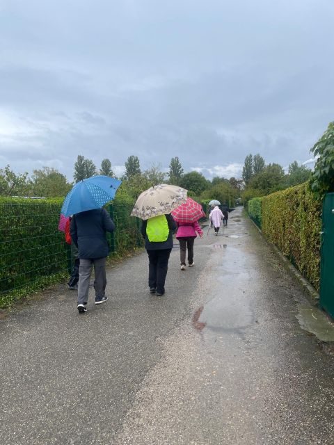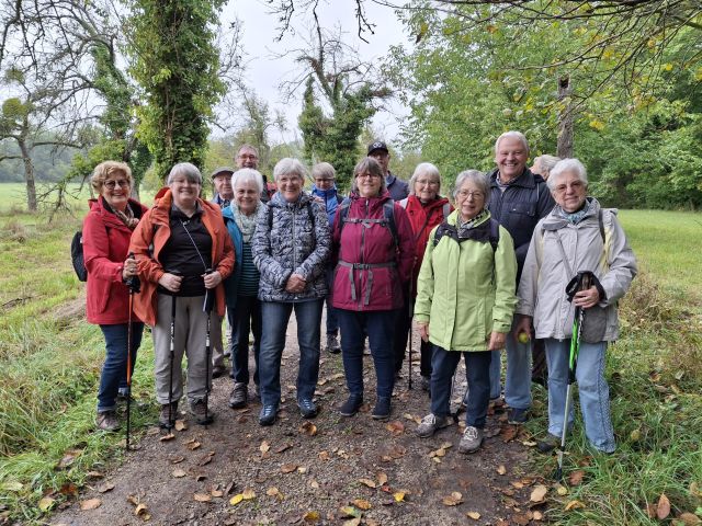 Beginn der Wanderung im SchlossparkKurzer Halt am Teich, um die Seerosen zu bewundernErfrischungspaus an der Zinkgräfsbankauf dem Rückweg durch den Exotenwaldtoller Blick auf die Windeck und ins Müllheimertalund noch einmal durch den Schlossparkund an der Sonnenuhr vorbei