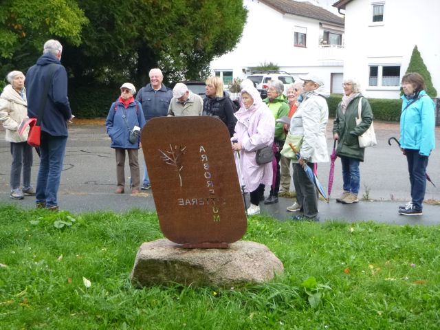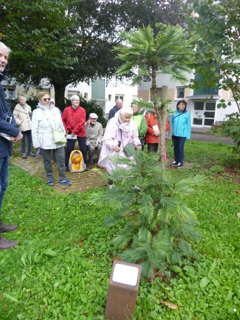 Ausgangspunkt dr Baumführung um den Friedrich-Ebert-RingDie Baumpflanzungen von A bis Z, 1. Baum der Zucker Ahornwir sahen unter Anderem den Taschentuchbaum,die Ölweide, oder die Wollemie